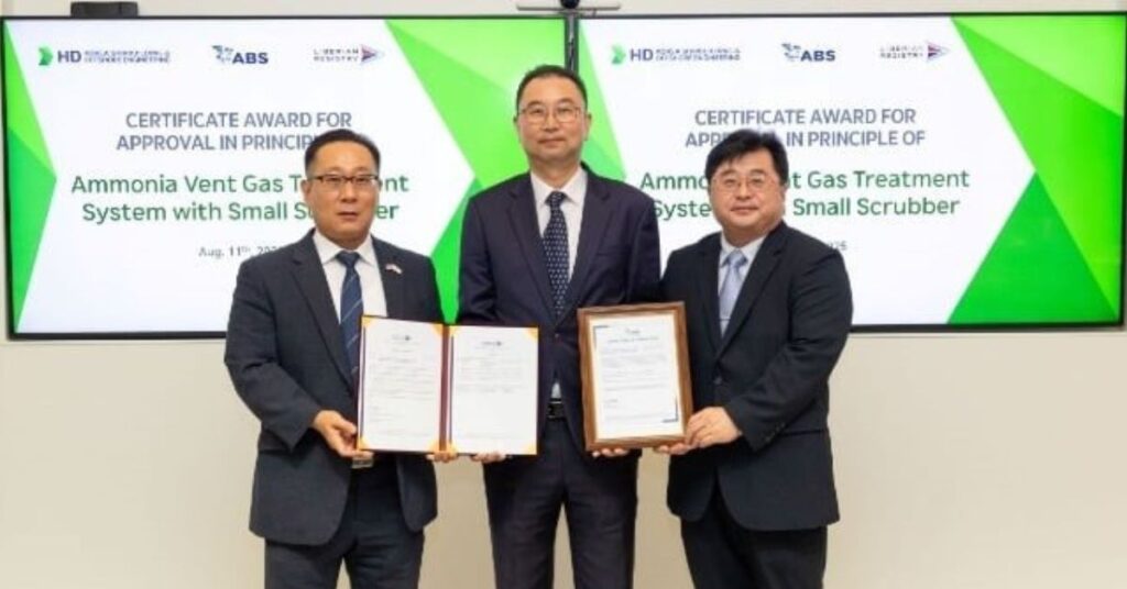 HD Korea Shipbuilding & Offshore Engineering (HD KSOE) has received approval in principle from ABS and the Liberian International Ship and Corporate Registry (LISCR) for its advanced ammonia vent treatment system.
